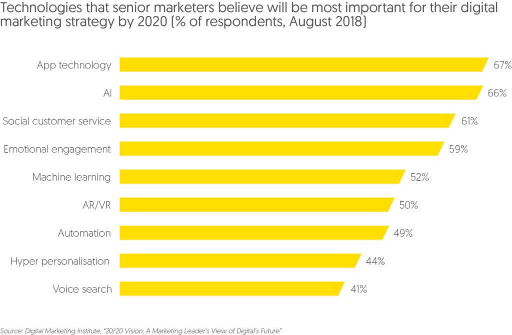 According to a recent Digital Marketing Institute (DMI) survey of senior worldwide marketing professionals, 41% believe that voice search will be “most important” for their company’s overall digital strategy by 2020. While voice search trails in importance compared to strategies like machine learning, AR/VR and hyper personalisation, it’s still top-of-mind as brands prepare for that moment when a critical mass of people start buying things by voice on their smart speakers or smartphones.