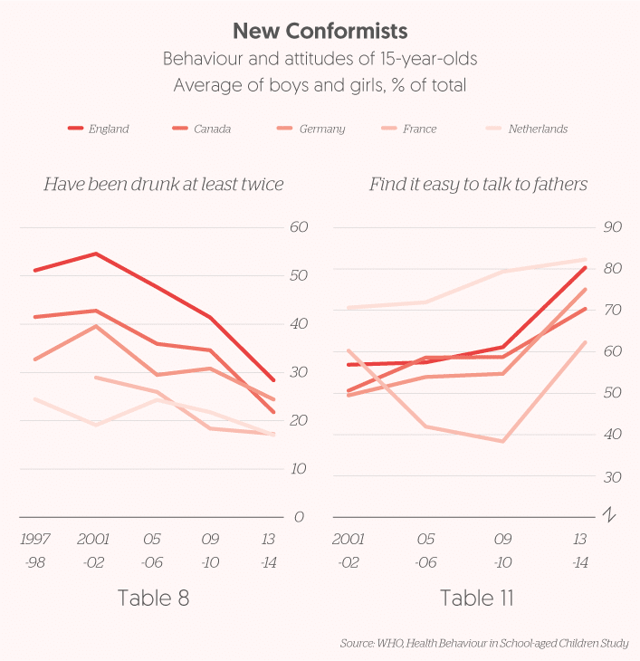 Historically, advertisers targeted young people because they were the people who changed how we view brands and the culture around them. The young have traditionally been the disruptors in society, from the rock & rollers in the fifties, hippies & revolutionaries in the sixties and punks in the seventies to slackers in the 1990s. This was expressed in misbehaviour brought on by ‘Sex and Drugs and Rock ‘n’ Roll’. The young today think and behave differently from previous cohorts of the same age. Younger generations are becoming more conformist. These shifts can be seen in almost every developed country from US to South Korea and are accelerating.